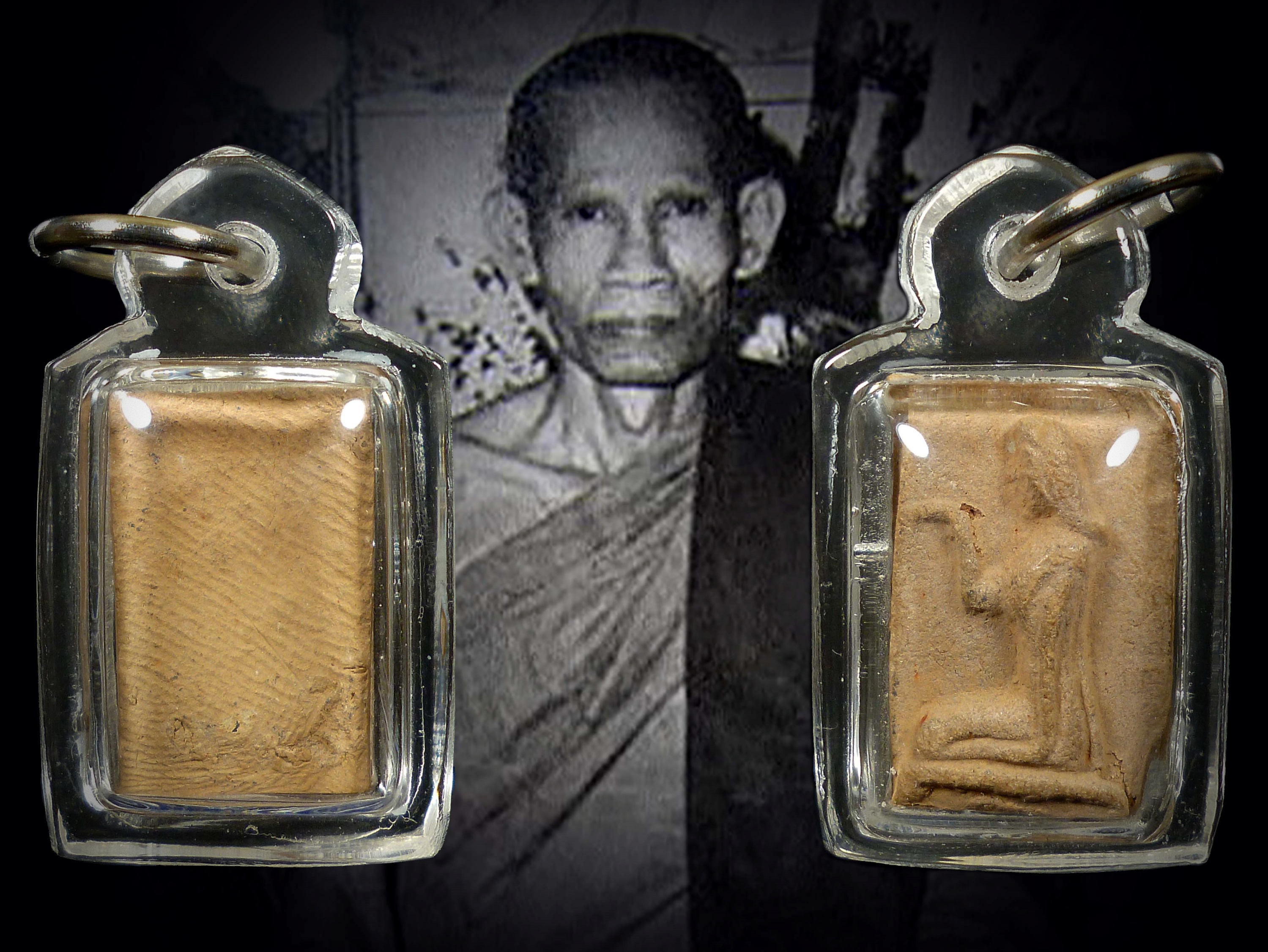 Somdej Chaan-Mak amulet, blessed by Kruba in 2542. It is made from chewed betel nut mixed with pollen powder, incense and candles that Kruba used to worshipping the Buddha. On the back was a rice flour relic,